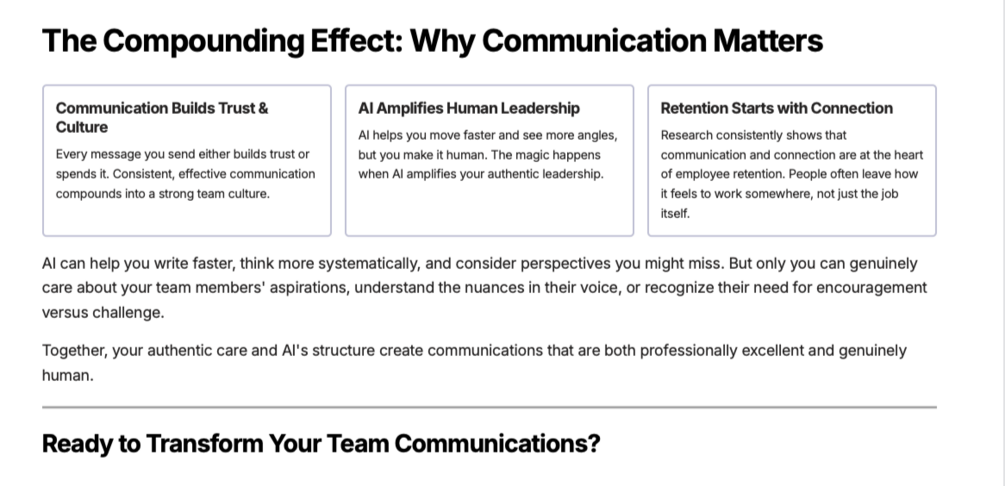 The problem? AI doesn't know your leadership style, team's concerns, what you're trying to achieve, or how you want people to feel.